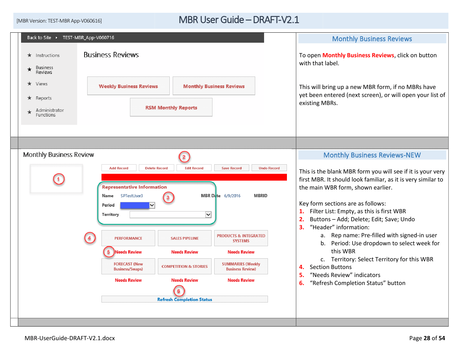28 – Demonstrates navigation and drop-down list functions.