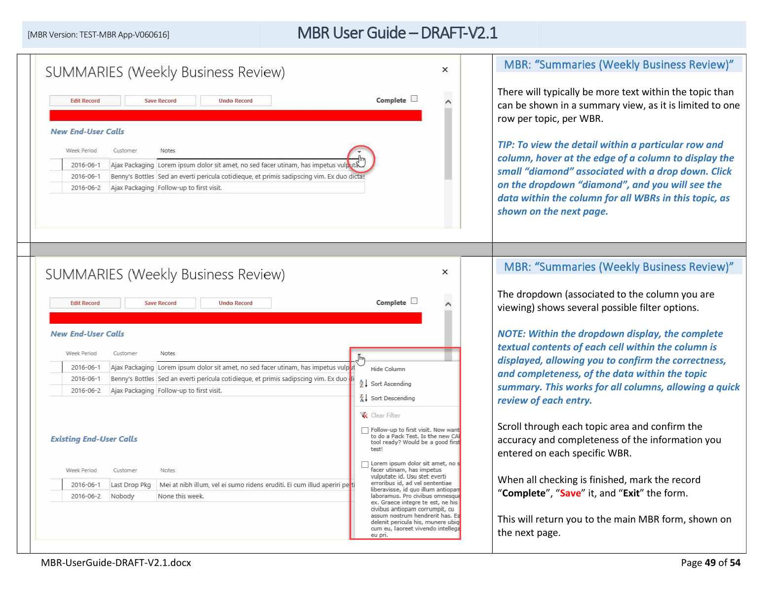 Sample training manual of custom CRM system developed on MS Access web application 2013.